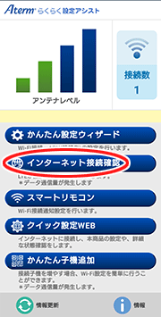 ホーム画面から、「Atermらくらく設定アシスト」のアイコンをタップします。 設定画面イメージ