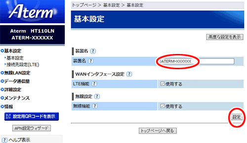本商品の装置名を変更します。ご利用開始時では、末尾の6桁は本商品のMACアドレスの下6桁が設定されています。