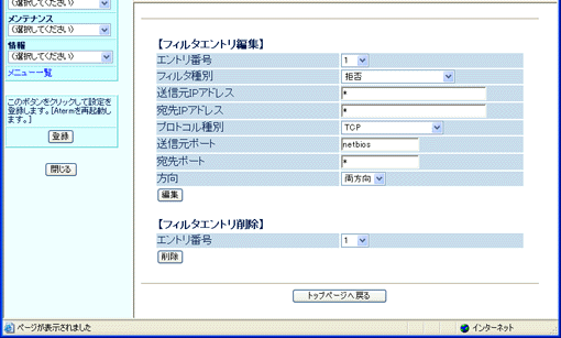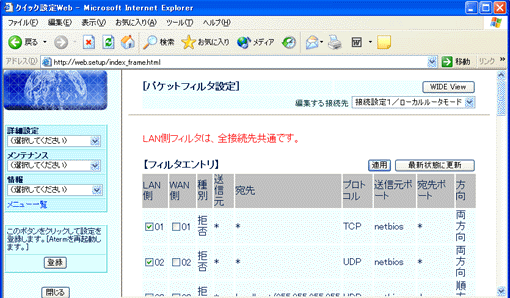 ただし、これらのエントリが適用された場合、NetBIOS等を利用したWAN側との