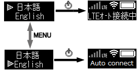 MENUボタンで[日本語]または[English]を選択し、電源ボタンで決定します。