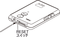 POWERランプが緑点滅になってから1分以内に、細い棒状のもの(つまようじなど電気を通さない材質のもの)でRESETスイッチを押す(約1秒) |