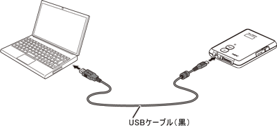 本商品のUSBポートとパソコンのUSBポートをUSBケーブル(黒)で接続する |