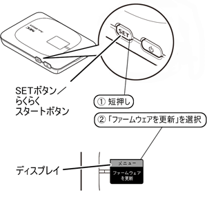 ディスプレイが点灯したらすぐにSETボタンを短押ししてメニューの「ファームウェアの更新」を表示する