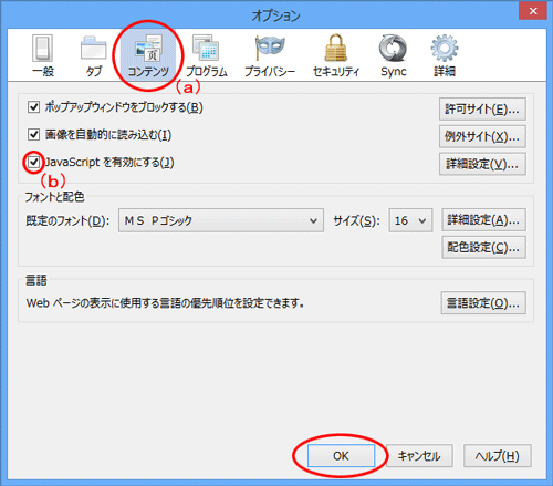 [JavaScriptを有効にする]にチェックする(<図1>の(b))