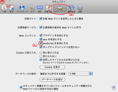 [JavaScriptを有効にする] にチェックを入れる(<図1>の(b))