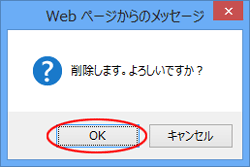 「ファイル/フォルダ一覧」で削除するファイル名の[削除]をクリックする |
