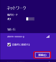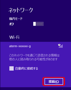 接続する無線LAN親機のネットワーク名(SSID)を選択し[接続]をクリックする |