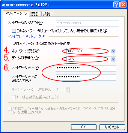 <暗号化をWEPで設定する場合>