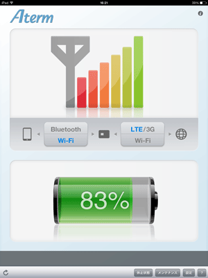 ※[Bluetooth]、[LTE/3G]と[Wi-Fi]の接続を切り替える際は、いったんインターネットから切断されますのでご注意ください。