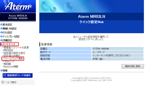 ファームウェアとは、本商品を動かすソフトウェアのことです。 ファームウェアをバージョンアップすることで、不具合が修正されたり、新機能が使えたりします。ファームウェアは最新のバージョンでご使用ください。