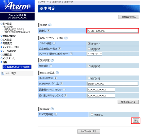 本商品の装置名を変更します。ご利用開始時では、末尾の6桁は本商品のMACアドレスの下6桁が設定されています。