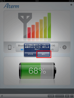 本商品が休止状態のときに専用アプリ「Aterm Mobile Tool」やBluetoothが搭載されている子機からクイック起動することができます。