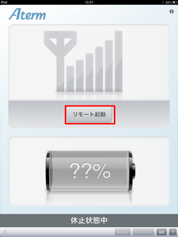 ※リモート起動したあと、約30秒後に「リモート起動後は、モバイルルータにWi-Fi接続してください」と表示された場合は、Wi-Fi接続してください。3分以上接続しないと本商品は休止状態に戻ります。