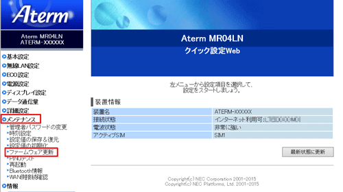 ファームウェアをバージョンアップすることで、不具合が修正されたり、新機能が使えたりします。ファームウェアは最新のバージョンでご使用ください。