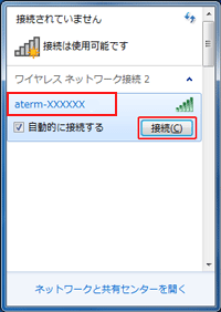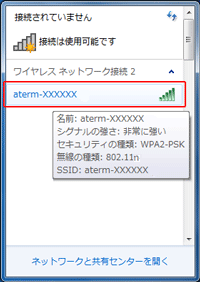 ここでは、Windows 7のパソコンから、本商品へWi-Fi接続する手順について説明します。