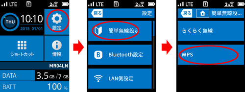本商品のディスプレイメニューでWPS機能を起動させてWi-Fi接続します。暗号化キーの設定が不要です。
