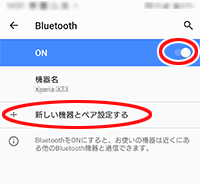ご利用の子機の[Bluetooth]を「ON」にし、「新しい機器とペア設定する」をタップします