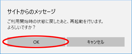 - [OK]をクリックします。下の画面が表示され、再起動します。