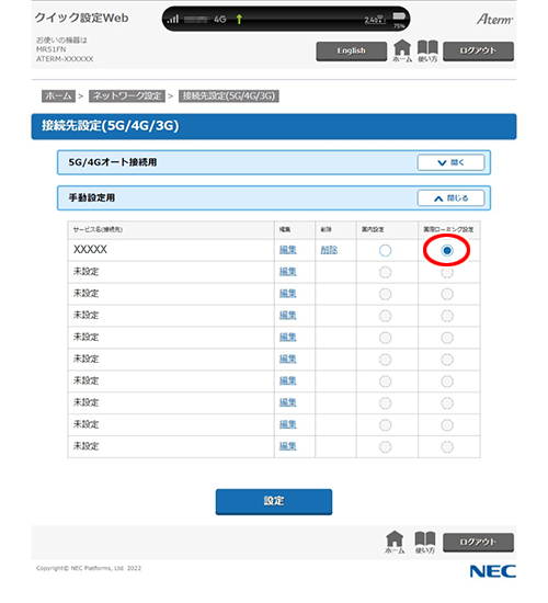 接続先は、検索を実行した時に表示されます。プルダウンメニューで選択します。この時、接続できない選択肢には"(接続不可)"と表示されます。