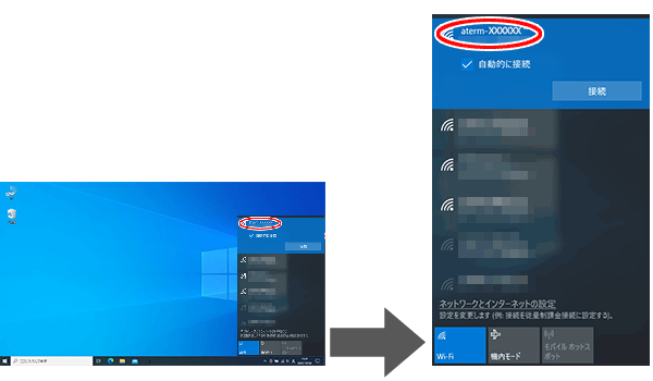 ここでは、Windows 10のパソコンから、本商品へWi-Fi接続する手順について説明します。