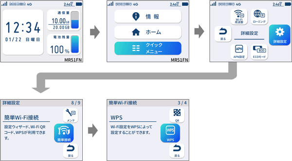 WPS機能でWi-Fi接続する場合は、本商品の設定を確認してください。(工場出荷状態の場合は、設定は必要ありません。)