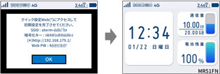 設定2の手順3で、クイック設定Webにアクセスして初期設定(管理者パスワード、暗号化キーの変更)を完了した場合、暗号化キーを変更しているためWi-Fi接続が切断されます。再度Wi-Fi接続する場合は、変更した暗号化キーで接続してください。