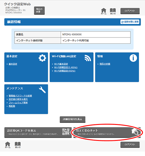 「クイック設定Web」で「見えて安心ネット」のホーム画面を開く