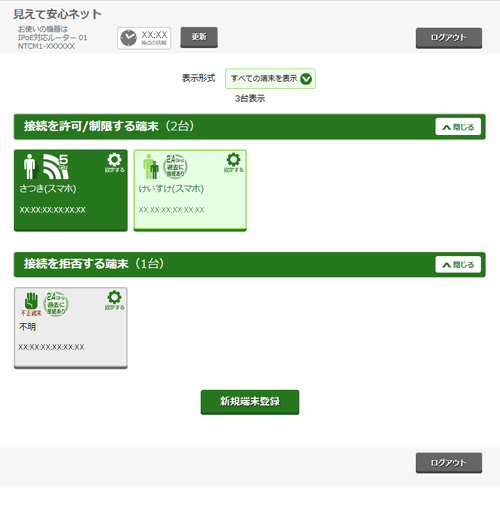 - 接続中の端末のみ表示