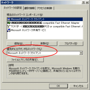 [優先的にログオンするネットワーク]で[Microsoft