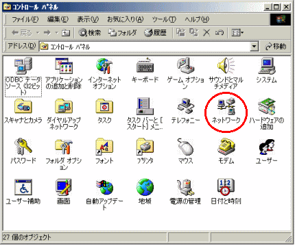 [コントロールパネル]の[ネットワーク]アイコンをダブルクリックする |