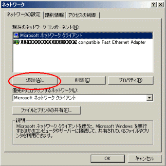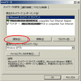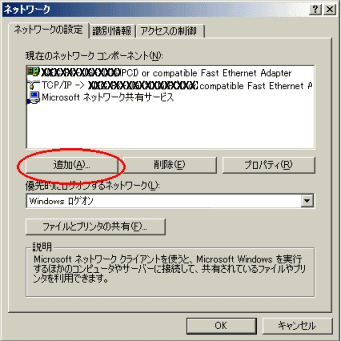 2.「ネットワークコンポーネントの追加」