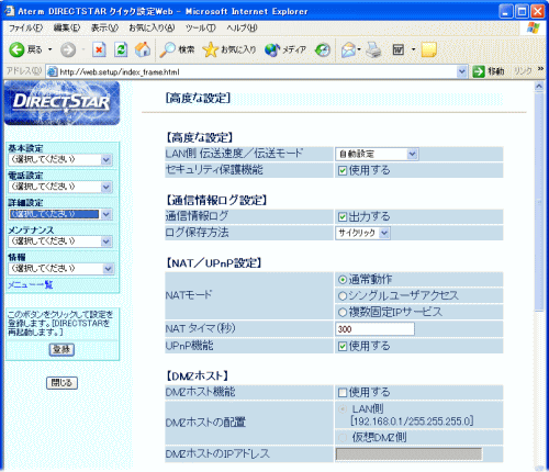 | [NAT/UPnP設定] |