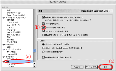 3. [JavaScriptを有効にする]にチェックを入れる(<図1>の(b))