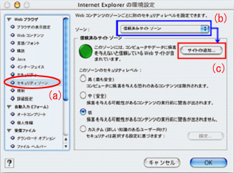 2. [Webブラウザ]の[セキュリティゾーン]をクリックする(<図1>の(a))