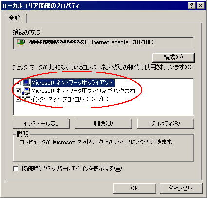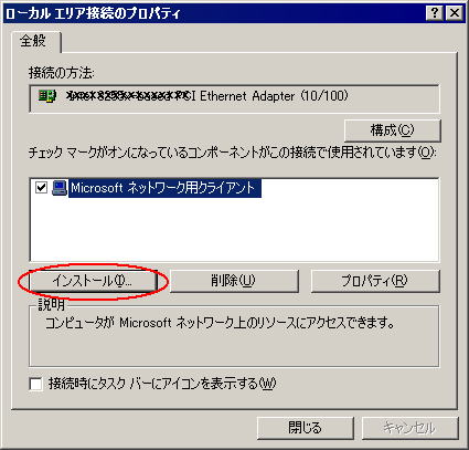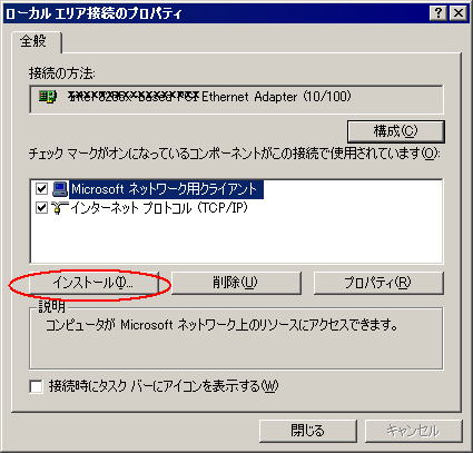 ■Microsoftネットワーク用ファイルとプリンタ共有のインストール