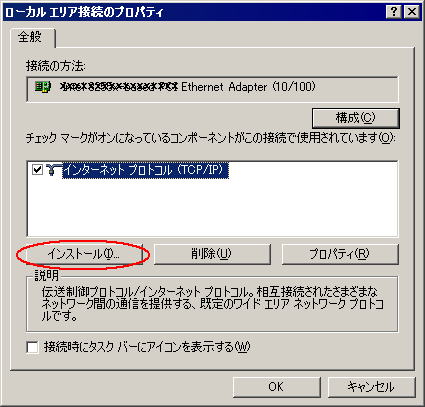 必要なネットワークコンポーネントがインストールされていなかった場合は、