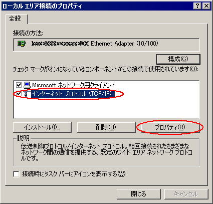 すでに、[ローカルエリア接続のプロパティ]画面が表示されている場合は、手順4に