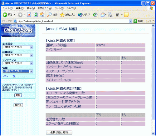 | ADSLモデムの状態を確認することができます。 | |
