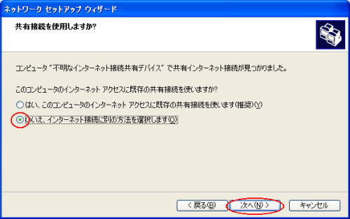 [いいえ、インターネット接続に別の方法を選択します]にチェックを入れ、