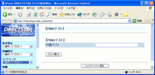 数秒後に画面が切り替わり、PINGテスト結果が表示されます。