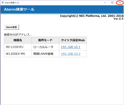 パソコン(Windows)から、「Aterm検索ツール」を使用したクイック設定Webの起動方法を説明します。