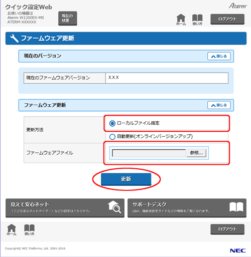 サポートデスクからダウンロードしたファームウェアファイルで、本商品のファームウェアを更新することができます。