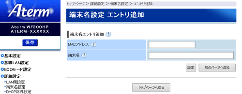| ■端末名設定 エントリ追加 |