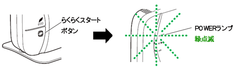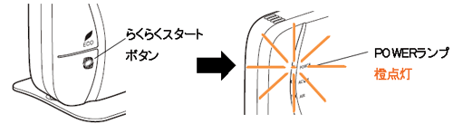 しばらく待って、POWERランプが橙点滅に変わったら、30秒以内にらくらくスタートボタンを長押しし、POWERランプが橙点灯したら放す