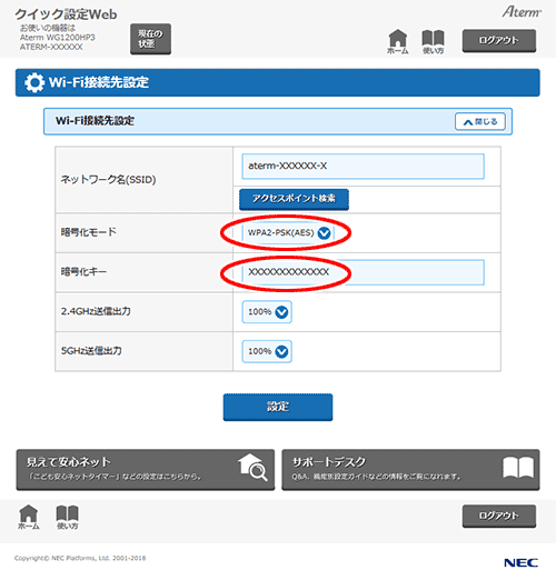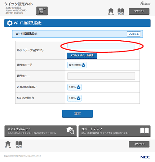 クイック設定Webで設定します。