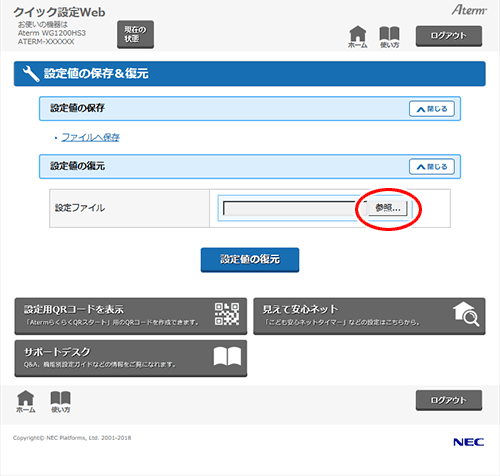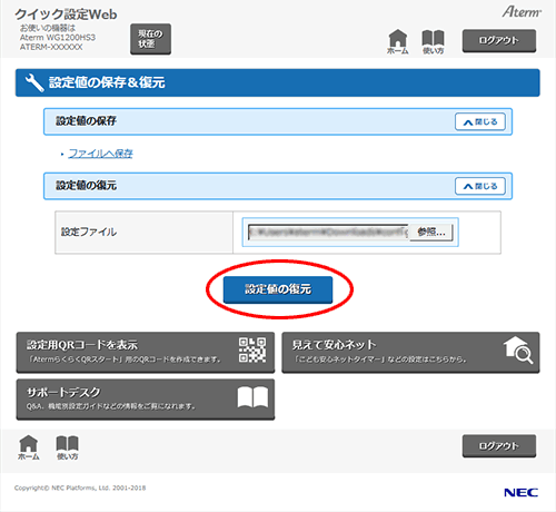 設定内容を復元する