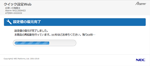 • 再起動中は本商品の電源を切らないでください。本商品が正常に動作しなくなる可能性があります。