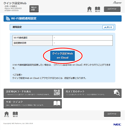 • Aterm機器の装置名に「クイック設定Web on Cloud」で設定した装置表示名が表示される場合があります。