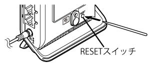 RESETスイッチを細い棒状のもの(電気を通さない材質のもの。つまようじの先など)で押し続け、POWERランプが赤点滅をはじめたら放します。
