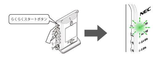 POWERランプが約10秒間赤点灯した場合は、らくらく無線スタートに失敗しています。→暗号化モードを変更してください。